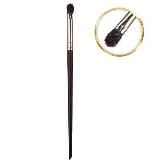 EXPERT E14 to płaski pędzel z naturalnego włosia koziego premium, zaprojektowany specjalnie do foliowych, brokatowych i sypkich cieni. Mięciutkie, gęsto ułożone włosie świetnie nabiera produkt, a płaski profil pozwala docisnąć i „zastawić” pigment na powiece, dając efekt gładkiej, lustrzanej tafli – jak nakładany palcem.
